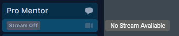 - For example, in the image below, you can see that the Lounge does not normally have a live stream, but the Pro Mentor room does. You can also see that the Pro Mentor stream is currently off: