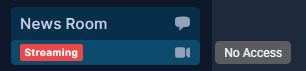 Lastly, You might not have full access or permission to a room or stream due to your access level. If that is the case, you will just see Streaming, No access. This allows you to be aware when streams are normally active for certain rooms. Clicking on the room or stream will lead you to a widget that gives you a link to upgrade if you are interested in doing so.