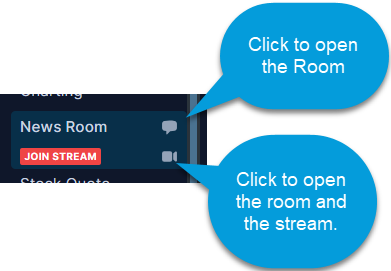Remember that the indicator "Stream Off" only states there is no live broadcast available at that time. However, clicking the chat room name will still open the chat within the regular chat hours (starting at 7 AM ET on market days).
