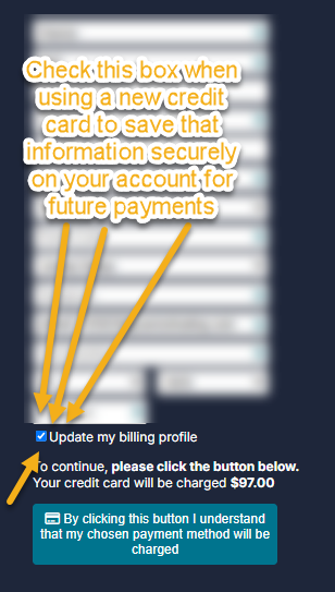 Members can update the billing information on their account by either updating the information directly, or by saving their new information when purchasing a renewal. If your membership is expired or due for payment, please see the "How to Renew" section farther down on this page, as it will show you how to both renew and update your billing information.